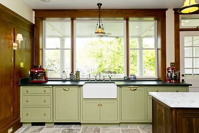 We incorporate the knowledge that we have gained through our preservation and restoration work into our renovations and new construction. We have studied historic materials, and have opinions about the proper way to renovate a home or construct new period additions; the key to building a top quality addition that will last lies in the historic structures around us. Quality materials like lime mortar, brick, slate, copper, and stucco are long-lasting and low maintenance. Proper flashings and roofing, and high foundations are essential to water management. Our new construction incorporates traditional materials and building methods that stand the test of time.